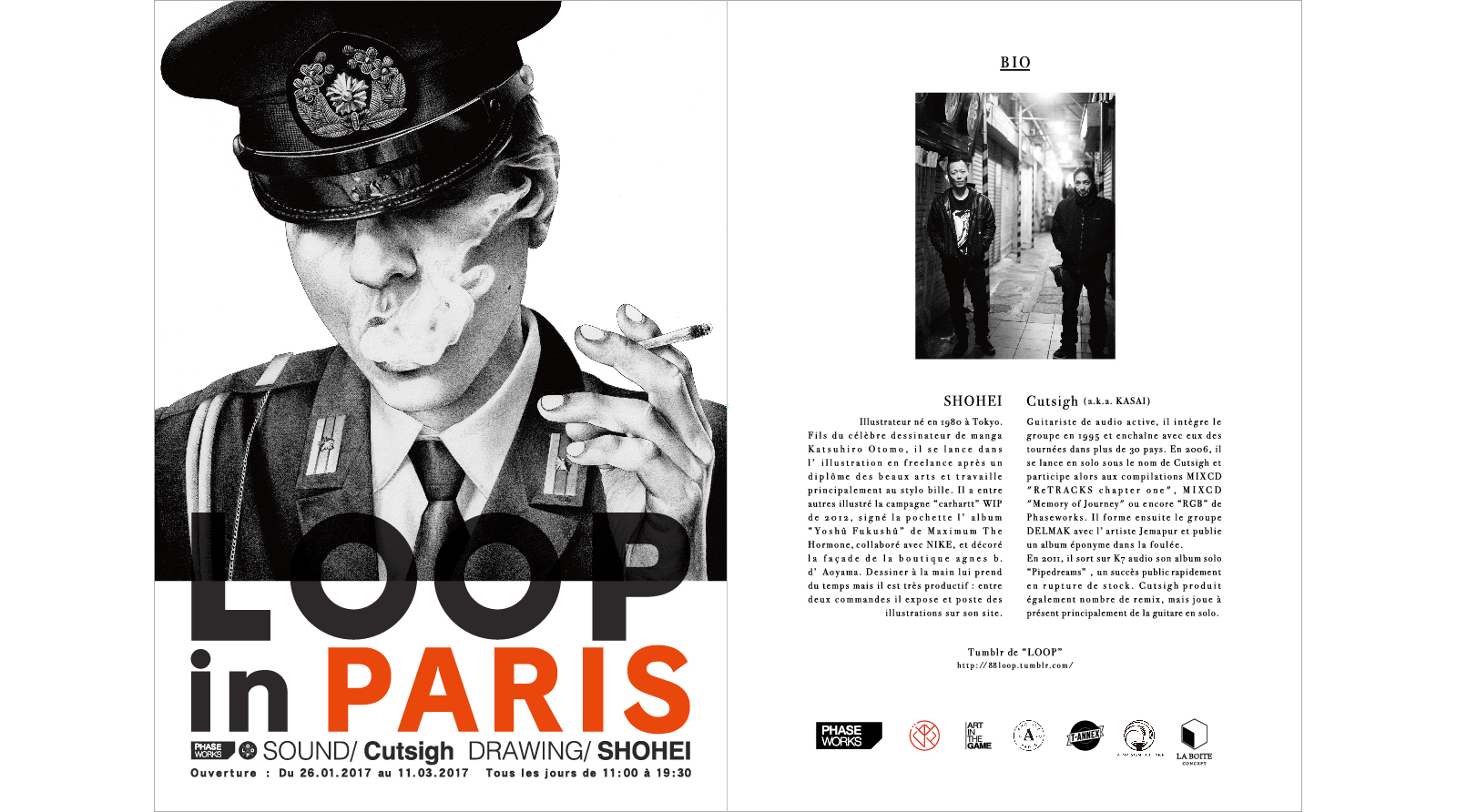 LOOP IN PARIS : Flyer SHOHEI (Illustrator) Cutsigh(music) PHASE WORKS(produce) ROKKAN DESIGN (Art direction / Design) PHASE WORKS http://www.phase-works.com